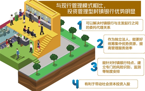 据悉,目前已有北京银行、浦发银行以及泰隆银行等多家银行宣布计划设立投资管理型村镇银行。泰隆银行副行长金学良表示:“作为发起行,泰隆银行在对村镇银行的管理上并不专业,如果有了投资管理型村镇银行牌照,可以实现更加专业化的管理,有助于提升村镇银行管理水平。”
