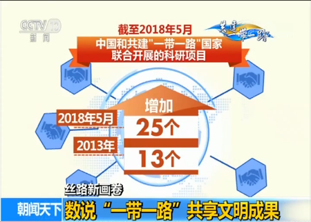 截至2018年5月,中国和共建“一带一路”国家联合开展的科研项目由2013年的13个增加到25个。合作领域涉及农业、能源、交通、生态环境、海洋等多个领域。从国家分布看,和中国合作最密切的国家是新加坡、印度和俄罗斯。