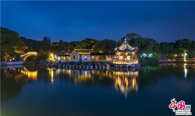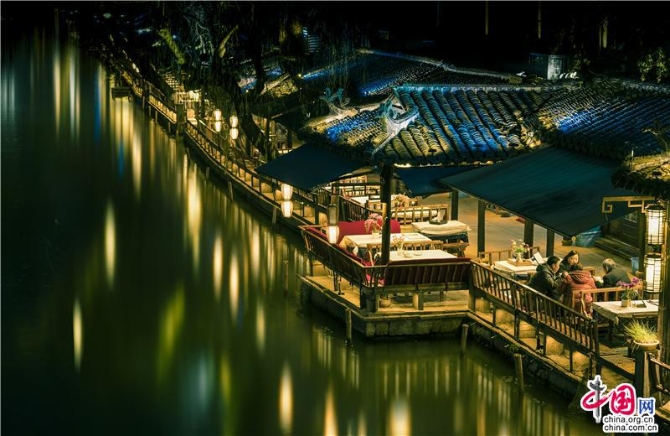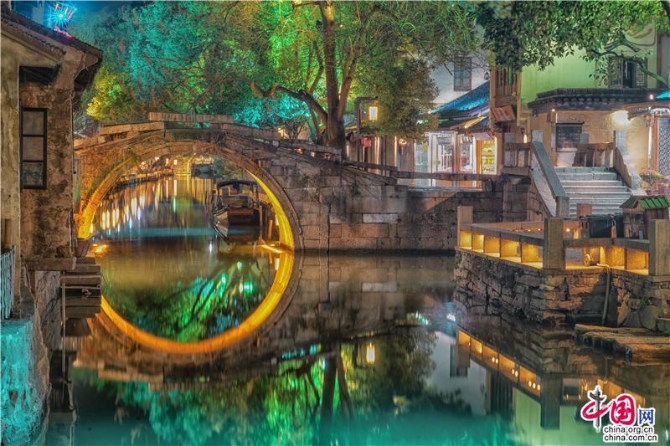 周庄的夜自带沉稳的底色,色河水流动的方向,把脚步带离食烟火,南湖胜境,古刹禅声,伴随着摇曳的薄光,点点禅心,悠扬在清幽思空的朦胧夜色。