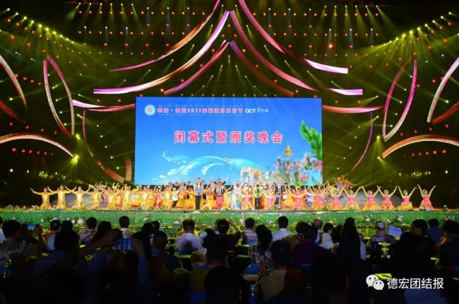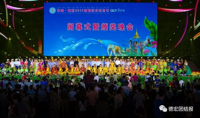 出席闭幕式的领导为在泼水节期间举办的“德宏美”傣族歌曲征集大赛、“金旺旺”傣族美食大赛、寻找“最美孔雀公主”大赛、第二届“丝路光影”国际微视频德宏影展等各项比赛获奖者,以及为本次泼水节的成功举办作出积极贡献的企业代表颁奖。州政协主席、中国·德宏2019国际泼水狂欢节组委会主任黄丽云致闭幕词。