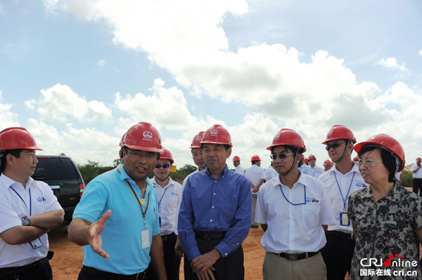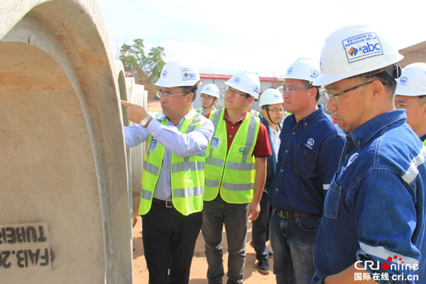 中国前驻委内瑞拉大使赵荣宪在委铁项目施工现场听取时任中国中铁委内瑞拉分公司常务副总经理甘百先(现任中铁国际集团董事长、党委书记)的工作汇报