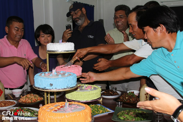 中国同事为胡里奥庆祝生日