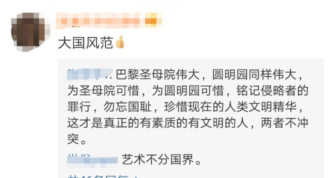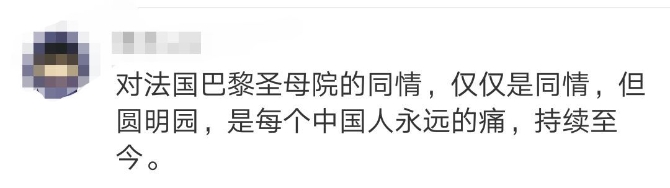 这一刻的中国人,怎能不想起,背负了一百多年圆明园烧毁的心灵创伤,何其艰难、何其罔然,可惜圣母院,可惜圆明园,文化不应该这样毁灭,更不应该人为践踏。