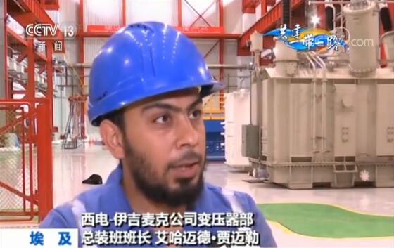 西电-伊吉麦克公司变压器部总装班班长 艾哈迈德·贾迈勒:以前这类变压器埃及全都需要从国外进口,现在我们自己能生产了。西电在埃及设厂,大大提高了埃及变压器的生产能力,他们将自己的优势产能带到我们这里。我们西电-伊吉麦克未来不仅要为埃及生产变压器,相信我们也会打开非洲市场。