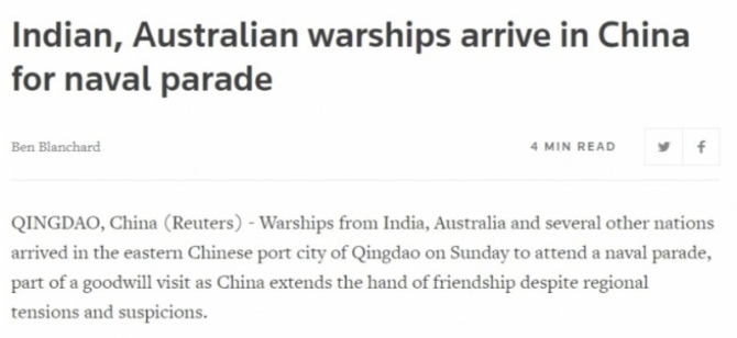 印度驻华使馆称,印度军舰参加中国人民解放军海军阅兵式,是深化印中两军关系的努力之一,符合两国领导人的战略指导。预计本次活动将进一步推进两军增进互信和理解的进程。