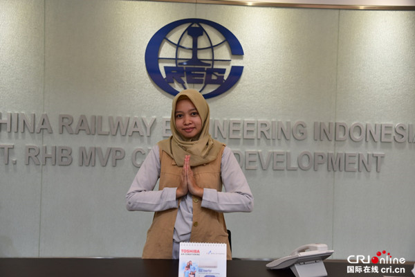 这位印尼女士名叫Ima,今年26岁,是中铁国际印尼公司聘请的前台,在公司工作有三年多了。