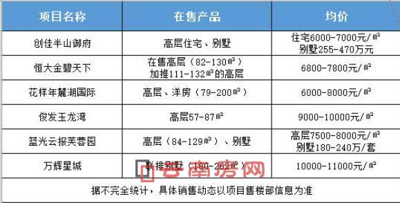 太平新城目前有6个楼盘在售,高层、洋房、别墅都有