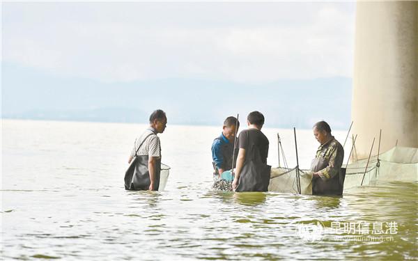 滇池放流土著鱼苗。记者王俊星/摄