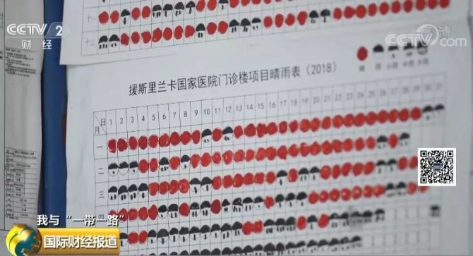 斯里兰卡雨水多,为了不耽误工期,马义源和同事们在墙上贴出了当地天气晴雨表,哪天下雨哪天出太阳用不同的颜色和标志区分明确,再根据天气情况做工程预排。雨水带给他们最大的困扰,就是无法将搅拌混凝土的砂子晾干。由于医院的场地有限,砂子堆积得很高,料堆底部常铺的混凝土,排水性又很差,常常是装载机一铲子铲进去的砂子,上层干了下层还湿着,砂子的含水量完全无法控制,拌出来的混凝土不是太稠就是太稀。