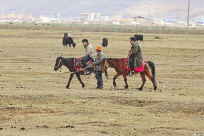 4月8日,游客正在纳帕海边体验骑马。