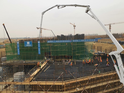 CBD项目中第一高楼标志塔项目2018年6月动工,当年12月完成基坑混凝土换填。2019年2月25日,该项目底板混凝土开盘浇筑,38小时完成18500立直径约70米、厚大5米的多边形钢筋混凝土底板浇筑,创下非洲建筑工程最大基础底板浇筑纪录。