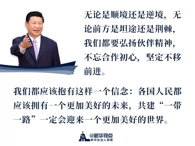 “我们要乘势而上、顺势而为,推动‘一带一路’建设行稳致远,迈向更加美好的未来。”习主席在首届高峰论坛上这样说。