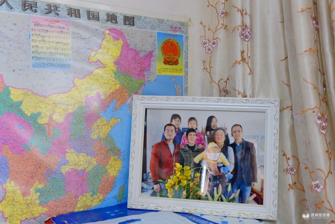 钟远财到昆明半年后,便把家人接了过来,一家人住在单位分配的红砖房里,40多平米的两房一厅,有一个狭窄的卫生间,没有厨房,他们只好在阳台里搭个简易的台子做饭。搬了一次过渡房以后,2011年3月份,钟远财和妻子搬到了现在位于石油小区的经济适用房里,60平米的两室一厅一厨一卫,对于老两口来说也算住得舒适。儿女们则各自成了家,分别在在昆明和广州买了房子。