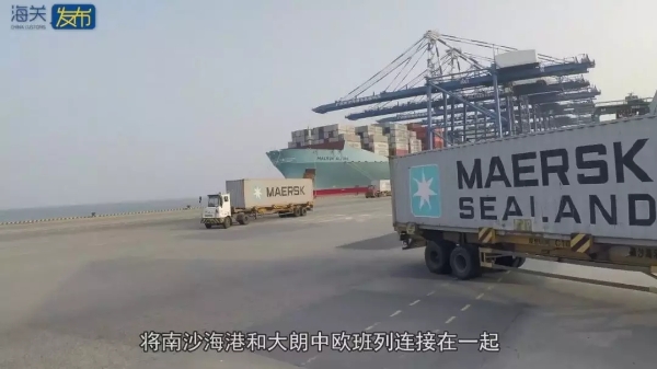 将南沙海港和大朗中欧班列连接在一起。