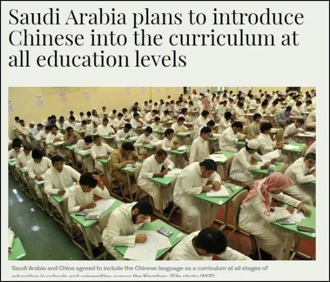 距离阿联酋不远的沙特阿拉伯对于推进本国的汉语教育却有着不同的规划。2019年2月23日,沙特阿拉伯宣布将汉语纳入沙特所有教育阶段的课程之中,不过首先将派教师赴中国学习汉语并掌握汉语教学方法。