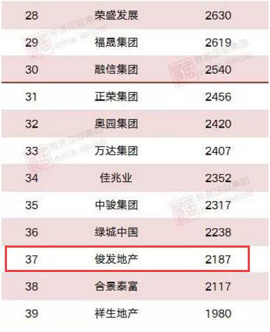 俊发土地储备建筑面积居全国37名