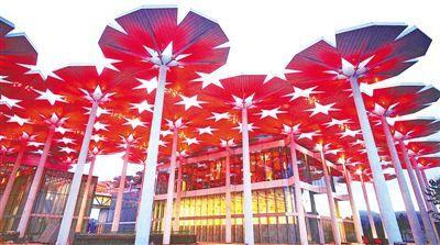 由94把巨大钢“花伞”构成的国际馆,宛如一片绚烂的“花海”。(除署名外均为本报记者贺勇摄)