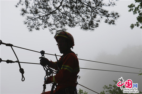 消防员准备绳索救助系统。中国网 记者彭瑶/摄
