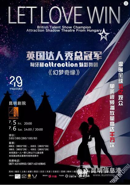 据悉,7月5日上演的《幻梦奇缘Let Love Win》非常适合全年龄段观众到剧院来欣赏。如果想在热辣的三伏天,躲过骄阳与影子一同嬉戏,那么现在就可以致电昆明剧院订票啦。本次开票,为全国范围内的首场演出开票,特别准备了双人和三人特惠套票,详询0871-63169950/0871-63169845。