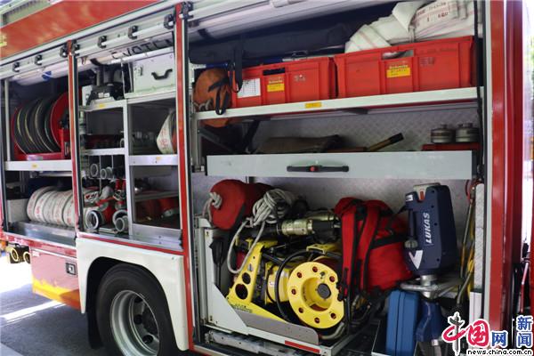 消防车内配备的救援设备。中国网记者 彭瑶 摄