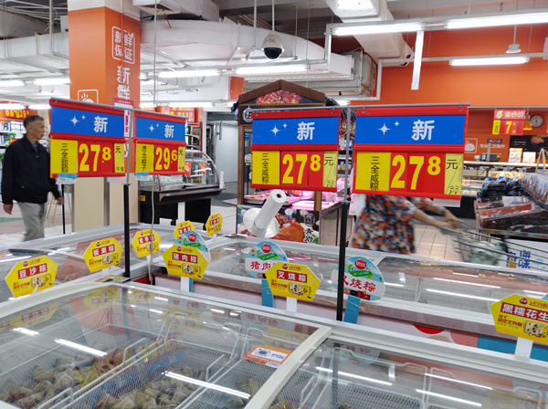 “有空来超市逛逛,好多商品5折促销。”五一节假期虽然不及春节和国庆节长,但由于正值换季,成为一年超市业绩的晴雨表。当天,记者在沃尔玛人民西路店看到,该超市原价79.8元/袋(5公斤)的泰国香米,现在只卖39.9元;原价139元/组的洗衣液,现在只卖69.5元;原价598元/台的九阳电饭煲,现在只卖299元;原价499元/台的美的电饭煲,现在只卖249.5元;原价12.8元/袋的徐福记沙琪玛,现在只卖8.8元。