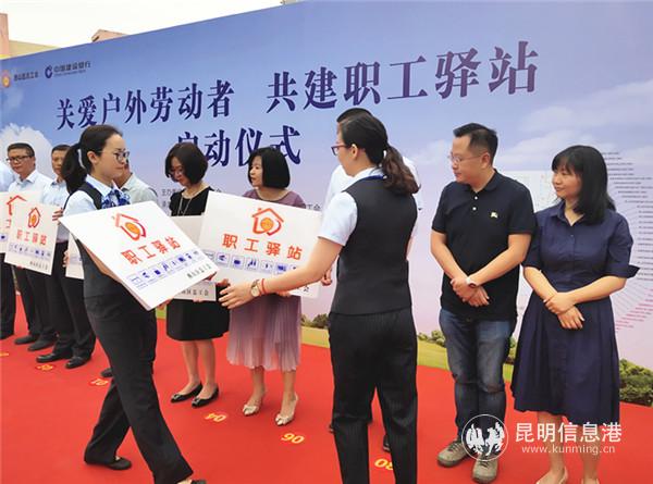 西山区总工会、西山区城管局、西山区金碧街道工会、北控环境服务公司,建行云南省分行辖内有关分支机构,以及西山区30名户外职工代表等参加了授牌仪式。