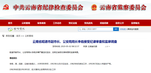 6686体育讯 据云南省纪委监委消息,昭通市副市长、公安局局长李彪涉嫌严重违纪违法,目前正接受纪律审查和监察调查。