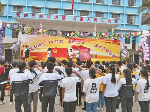镇康县凤尾中学师生举行入团宣誓。 通讯员张健星/摄
