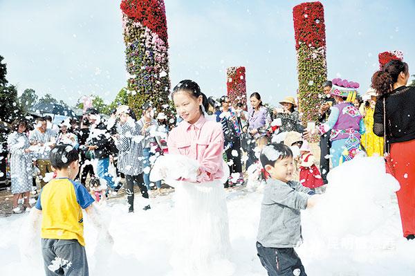小朋友们在世博园玩泡泡游戏。记者刘凯达/摄