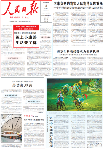 5月3日,《人民日报》头版刊发题为《独龙族七十年实现两次跨越——迈上小康路生活变了样(壮丽70年 奋斗新时代·来自一线的蹲点调研)》的文章,从诸多方面讲述了独龙族从新中国成立到整体脱贫的巨大变化。