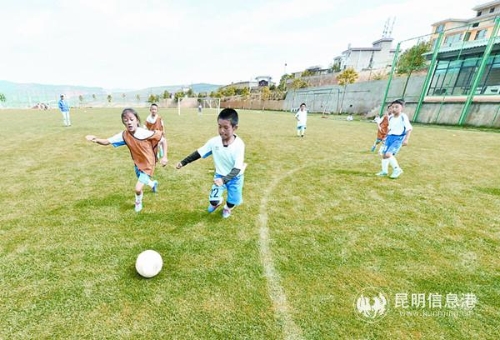 农家乐自建足球训练场地提高服务品质。记者王俊星/摄