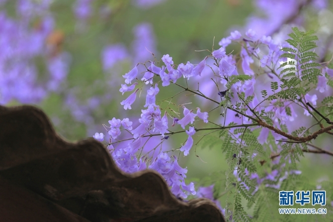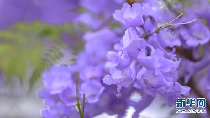 蓝紫色钟型花朵的蓝花楹,美丽而梦幻。(新华网 潘越/摄)