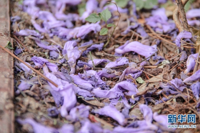 蓝紫色的花朵随风飘落,美不胜收。(新华网 念新洪/摄)