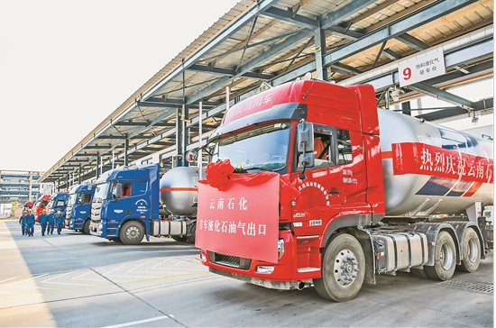 近日,3辆满载液化石油气罐车缓缓驶出口岸,将由云南石化生产的50吨液化石油气运往缅甸。这是中国石油首批进入东南亚市场的液化气产品,标志着中国石油液化气产品云南出口通道的正式打通。这是云南石化国际化经营迈出的重要一步,是云南石化响应国家“一带一路”建设号召,主动融入云南繁荣之路建设的具体实践。