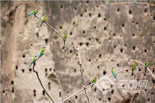 每年从4月初开始,数以万计的栗喉蜂虎陆续到达巧家县的江边河谷地带度夏筑巢繁衍后代,将鸟巢筑在沿江沙岩壁上。它们5月中下旬到7月初繁殖幼鸟,8月初带着儿女逐渐离开。
