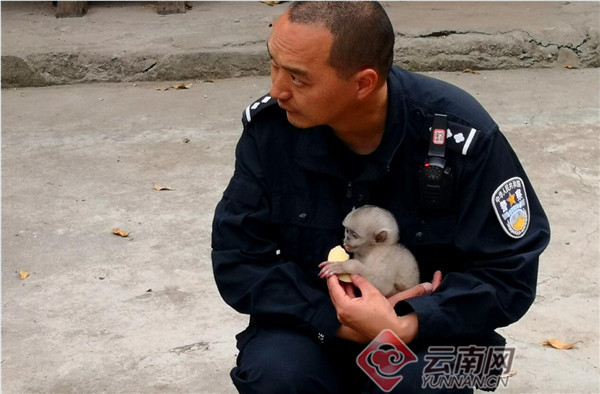 依喂在民警怀里的滇金丝猴 付丛生/摄