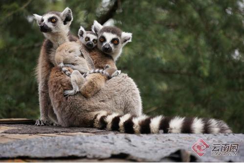 环尾狐猴“赖”在妈妈身上。云南野生动物园供图