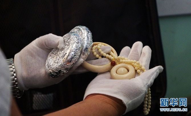 藏在锡纸里的象牙制品。新华网 范芳钰/摄