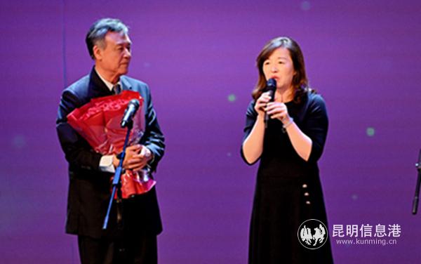 昆明剧院总经理胡明霞讲话 左为达式常