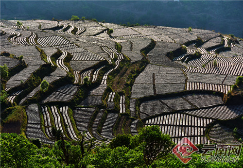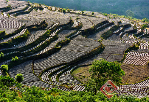 春耕时节,大理白族自治州南涧彝族自治县南涧镇白云乡完成地膜覆盖移栽烤烟种植的梯田构成一幅幅美丽的春耕画卷。眼下南涧县烤烟大田移栽正在稳步推进,今年全县将进一步加大科技种植、科技管理的力度,实现烤烟生产稳产量,提质量,增效益。