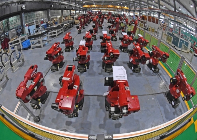 这是沈阳新松机器人自动化股份有限公司工业机器人生产车间(2017年6月6日摄)。新华社记者 杨青 摄