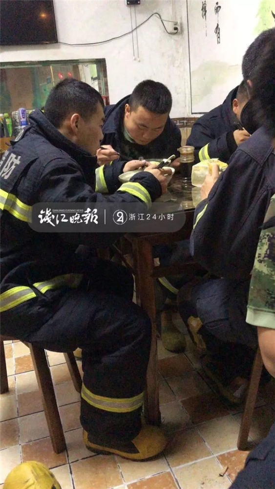 吃到的一半的时候,有消防员过来结账,但他拒绝了。“我就是发自内心不想收他们的钱,他们当时出警才回来,衣服都没来得及换,穿着战斗服。我就是觉得太辛苦了,这些小伙子,我不应该收他们的钱。”