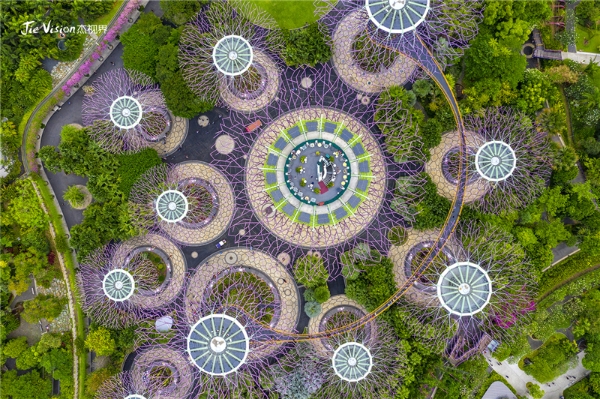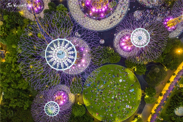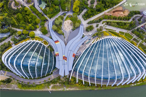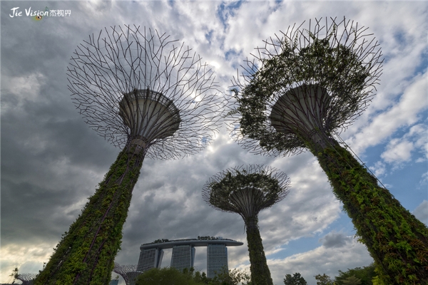 几年前新加坡政府致力于一项打造“花园中的城市”项目,听导游说,你所看到的这个造型奇特的建筑就是其中一部分,它的全称为滨海花园。