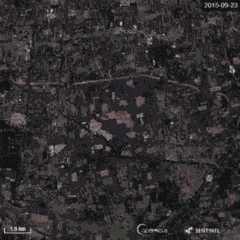这些卫星图像是从距离地面786公里轨道上拍摄的,图像数据来自欧盟地球观测和监测项目“哥白尼”。