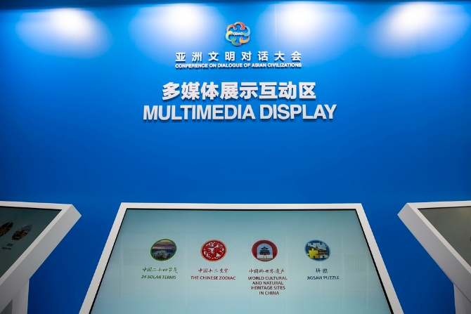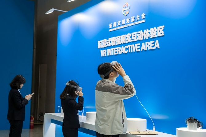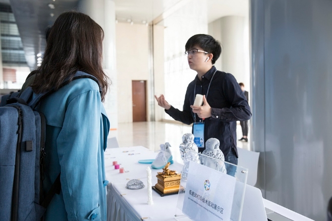 亚洲文明对话大会新闻中心开设有中国非物质文化遗产互动区、AR博物馆、VR沉浸式互动体验区、极速3D打印技术互动展示区等四大互动体验区。其中非遗互动区专门设置了四组工艺制作展示,记者可以亲身体验画国画、攒玉石宫花、兔爷彩绘、软陶工艺制作等。此外,据介绍,极速3D打印技术是中国自主研发的最新成果,其打印速度比传统的3D打印技术快百倍,也就是说如果传统3D打印需要耗时100分钟,在这里只需要1分钟。