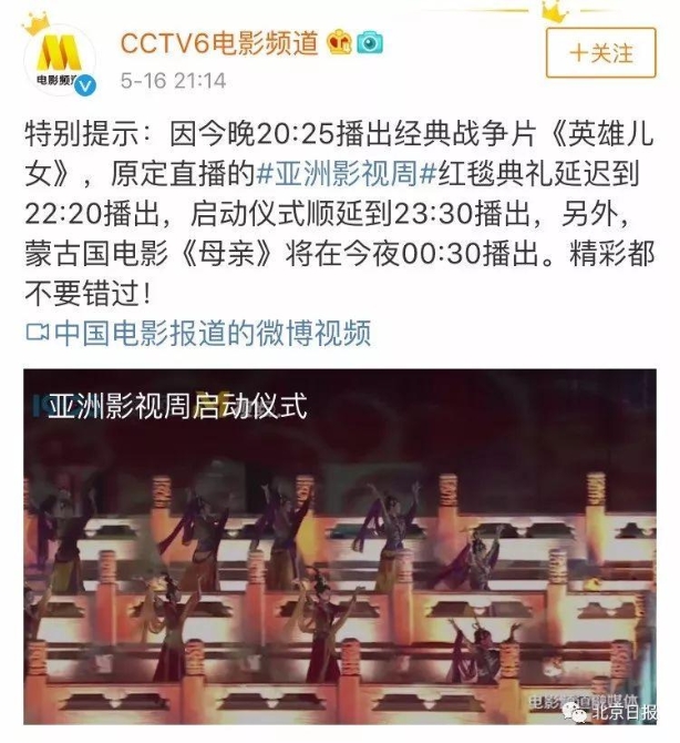 2019年5月16日《北京晚报》42版“今日电视节目预告”截图