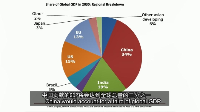 雅克称,中国作为全球大国的特征,首先当然是中国的经济实力。“我们必须承认中国的经济转型令人瞩目,2015年时中国GDP在全球总量中的占比就已经超过了15%,现在已经达到了16~17%。这非常了不起,要知道1980年中国GDP在全球占比只有1%。到2030年或2035年——预测不一定那么精确——中国贡献的GDP就会达到全球总量的三分之一,这个比例也是中国1820年所占的比例。所以其实这是有传统可循的。”