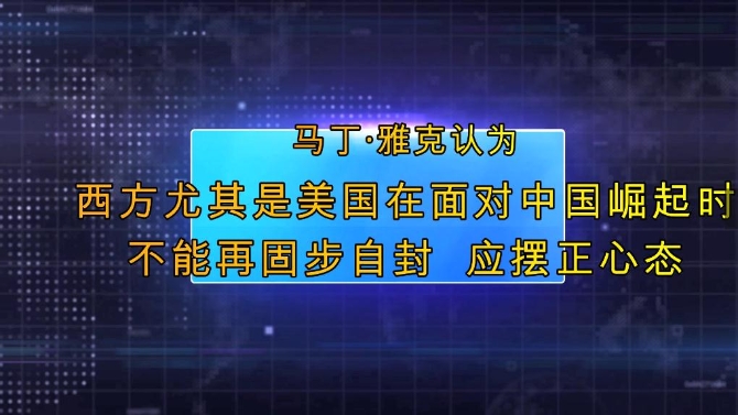 在演讲中,雅克还谈到了中美关系。“我认为中美关系已经驶入了未经勘测的水域。美国人现在有种心态,觉得中国是个威胁,或者至少也是个挑战。美国不可能阻止中国崛起。世界正在发生根本性转变,而中国崛起是其中一个伟大的、非同寻常的历史时刻。”