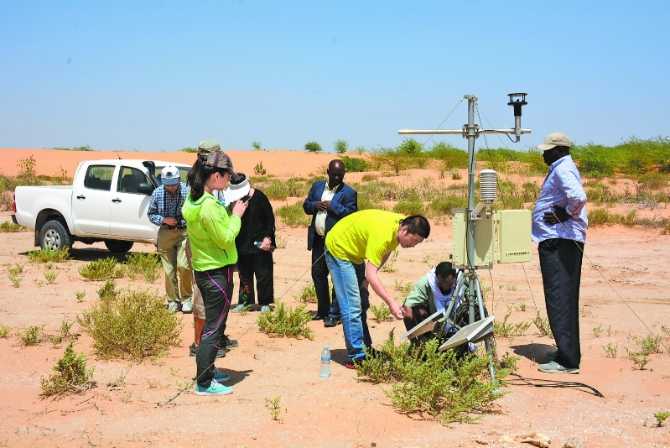 借助科技合作项目,2012年,新疆生地所防沙治沙团队来到“非洲绿色长城”的缔约国毛里塔尼亚,对这里的风沙运动规律、气候状况等进行基础研究,并向当地人宣传推广防沙治沙先进理念和技术。