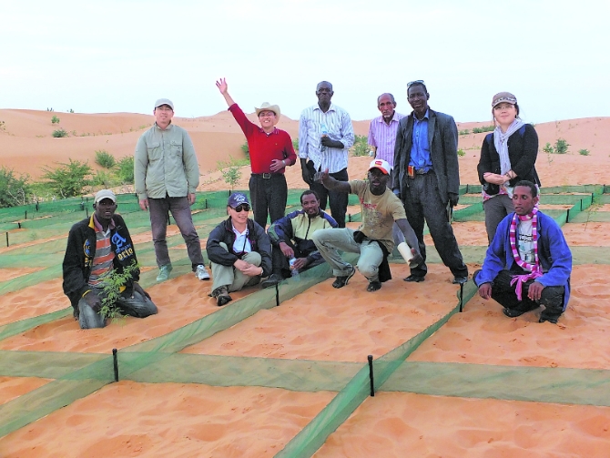 2012年,新疆生地所防沙治沙团队来到“非洲绿色长城”的缔约国毛里塔尼亚,对这里的风沙运动规律、气候状况等进行基础研究,并向当地人宣传推广防沙治沙先进理念和技术。